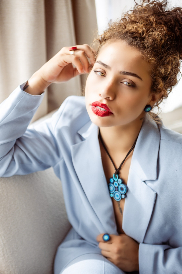 Colar Moderno na cor azul degradê, tons de azul bebê, azul turqueza, azul royal e azul marinho.